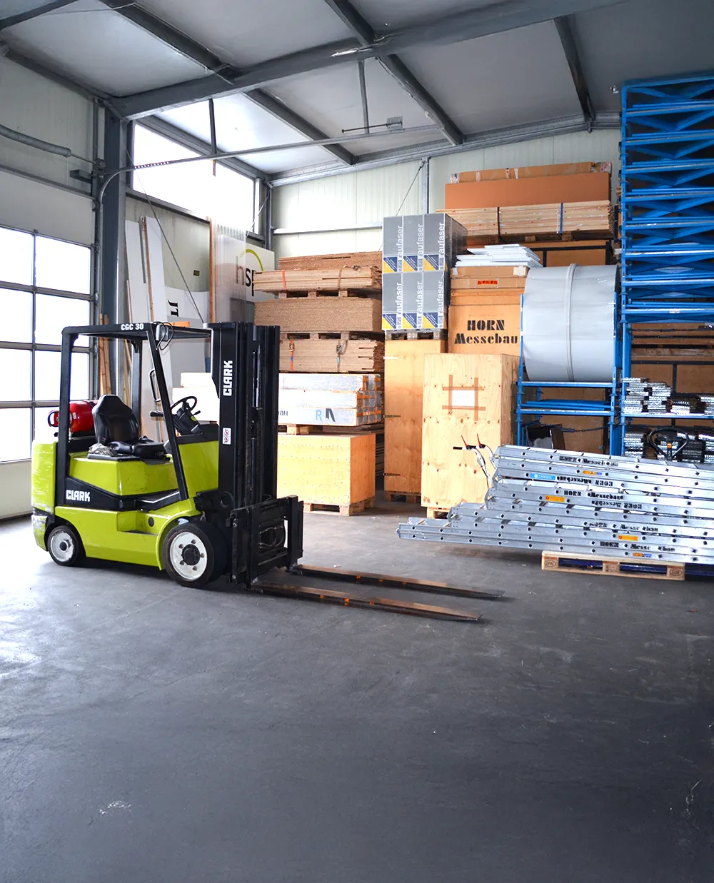 Wir organisieren Transport, Spedition und Logistik – inklusive Koordination von Gabelstaplern und Scherenbühnen direkt vor Ort.